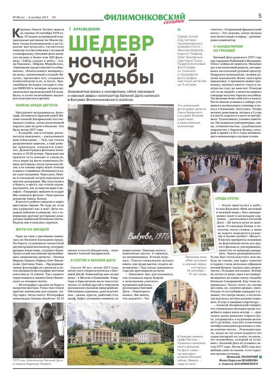 Шедевр ночной усадьбы / Виталий Лесничий // Филимонковский сегодня. -2025. - 1 октября. - №15(16). - C. 5
