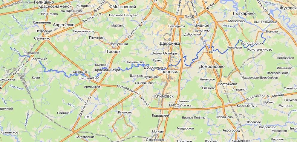 Левобережная часть долины Пахры - с преобладанием дерново-среднеподзолистых почв, а правобережная в западной части имеет дерново-слабоподзолистые, а восточной - светло-серые лесные почвы. В районе Пахры распространены отложения мелового, юрского и каменноугольного периодов, главным образом известняки и глины. Перекристаллизованный известняк, пласты которого нередко превышают полукилометровую толщину, наиболее часто встречающийся в черте города, получил название подольского мрамора.